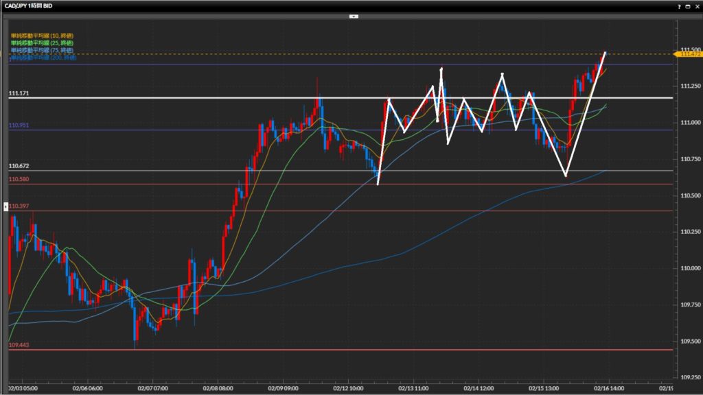 昨日に指標発表直後に110.67円を割る水準まで下落したのち、次の波で日足最高値を更新。