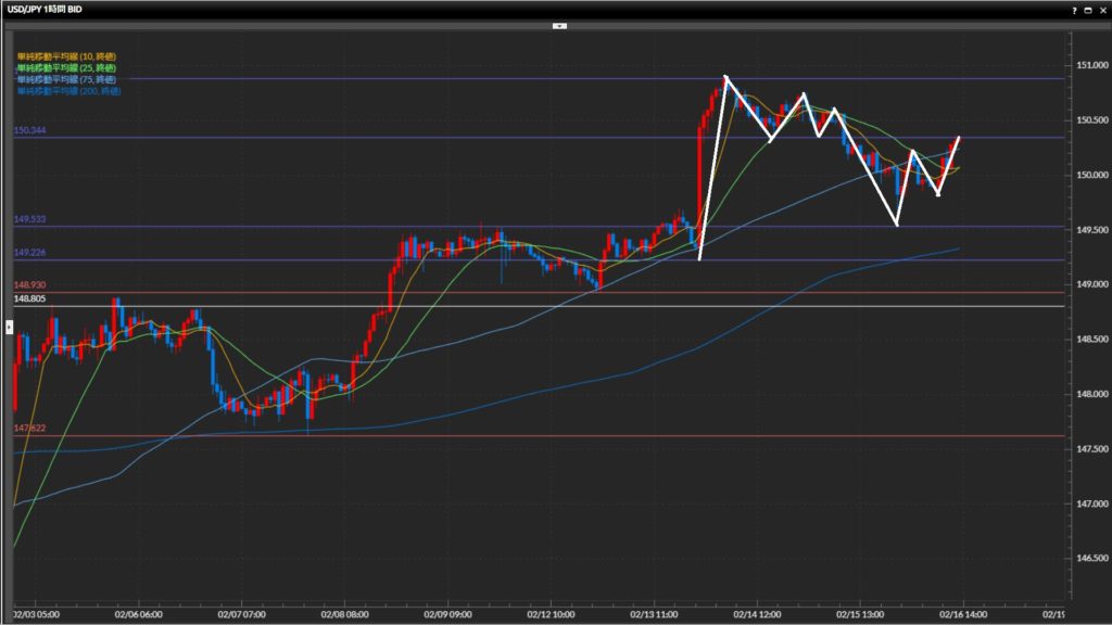 直近安値は149.53円。昨日は指標発表直後に150円台を大きく割ったものの、その後は上昇。