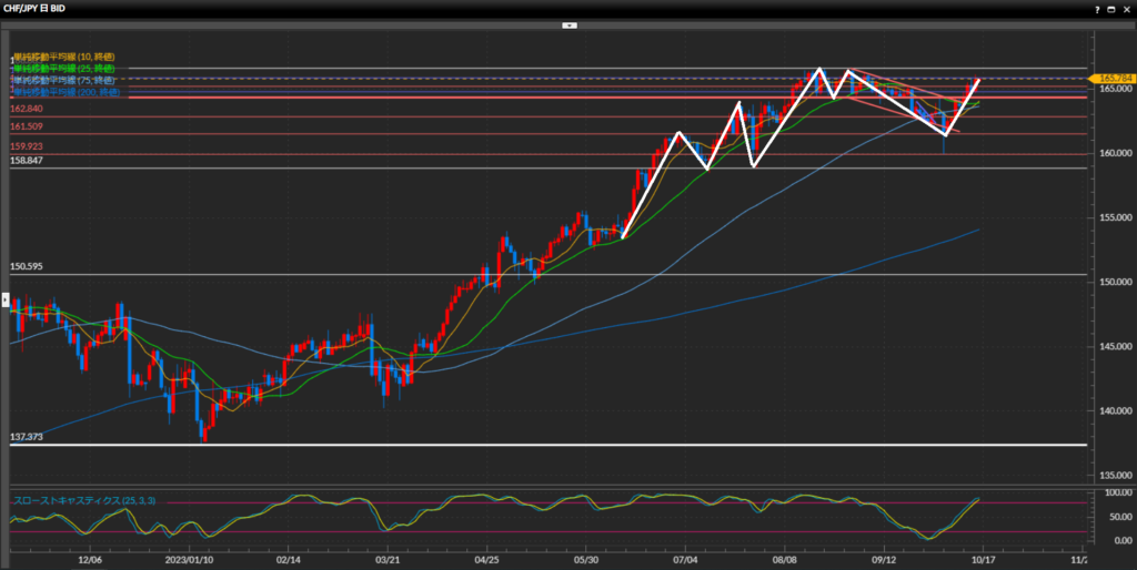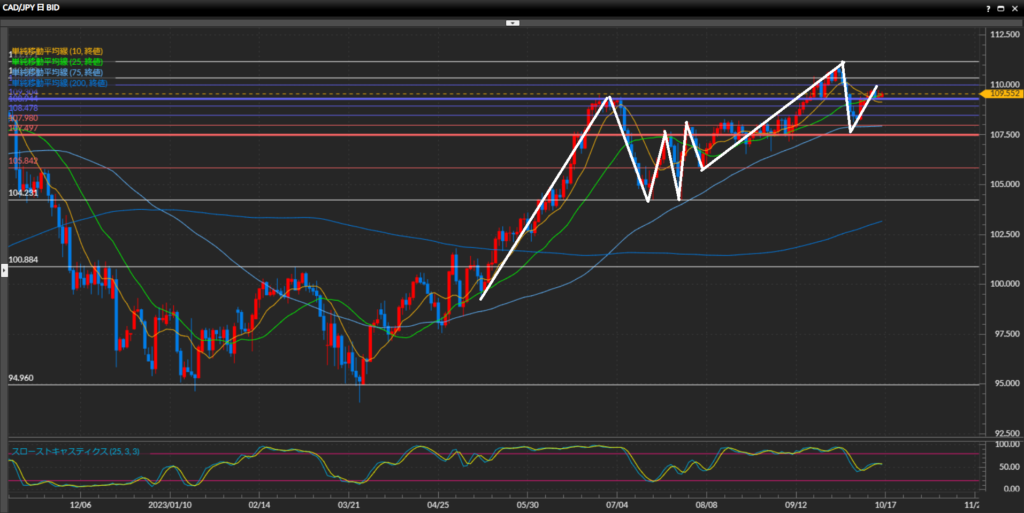【10月16日15時】為替市場テクニカル分析(CAD/JPY・CHF/JPY・EUR/USD)