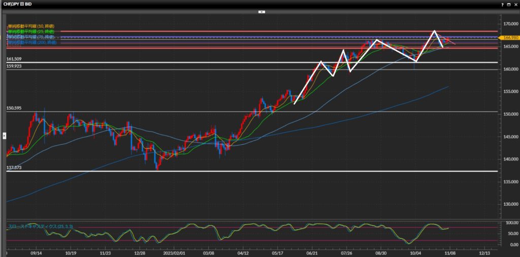 • フラン円日足は上目線、4時間足は保留、1時間足は上目線