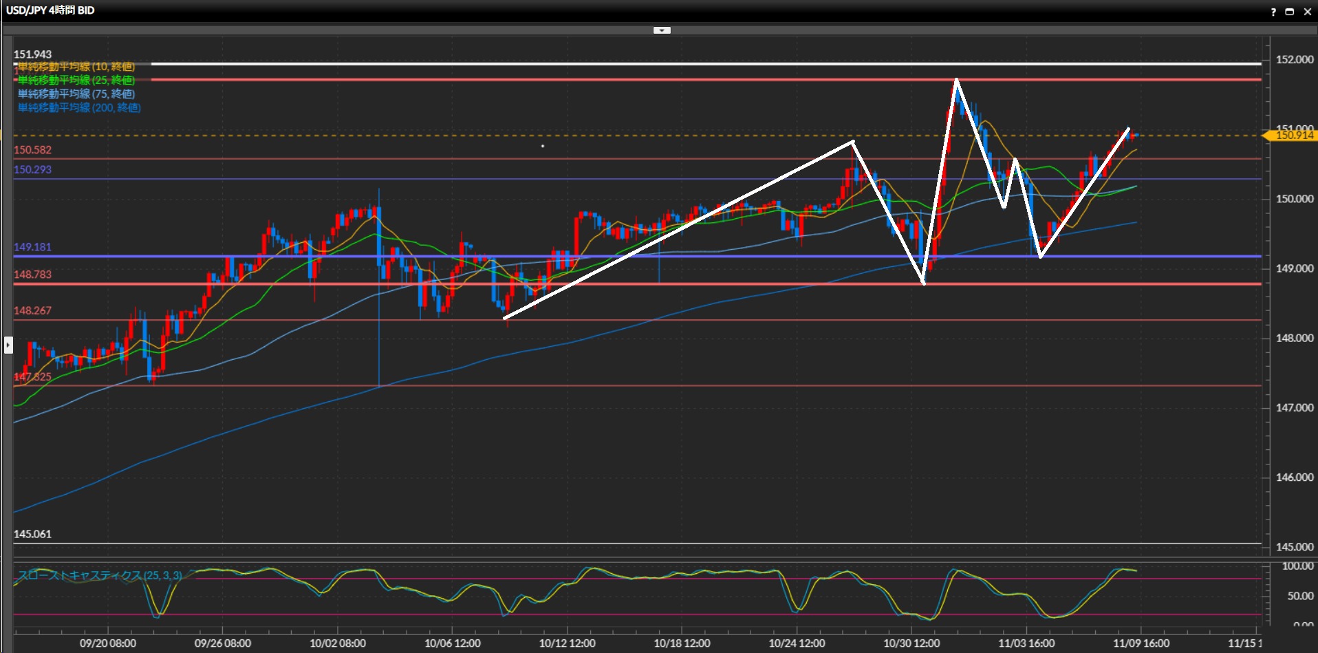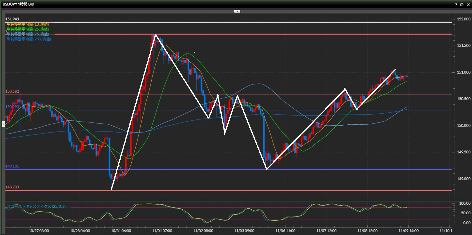 11月1日の高値151.72円手前までを目標にロング狙いが基本戦略。