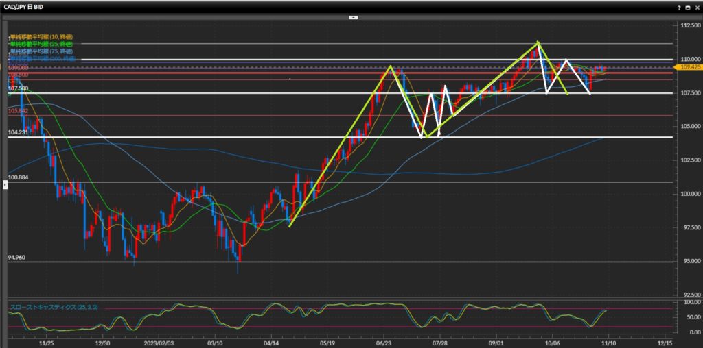 引き続き中東情勢や本邦通貨当局の為替介入への本気度チェックが焦点。 - 加ドル円は各時間足とも目線が微妙。
