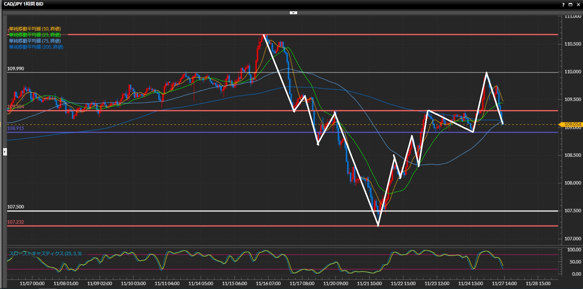 107.50円-111.17円のレンジと捉え、現在は上昇局面。