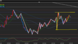 直近の波が下落に対して半値まで戻した事を考慮すると、勢いは落ち着いてきた印象。