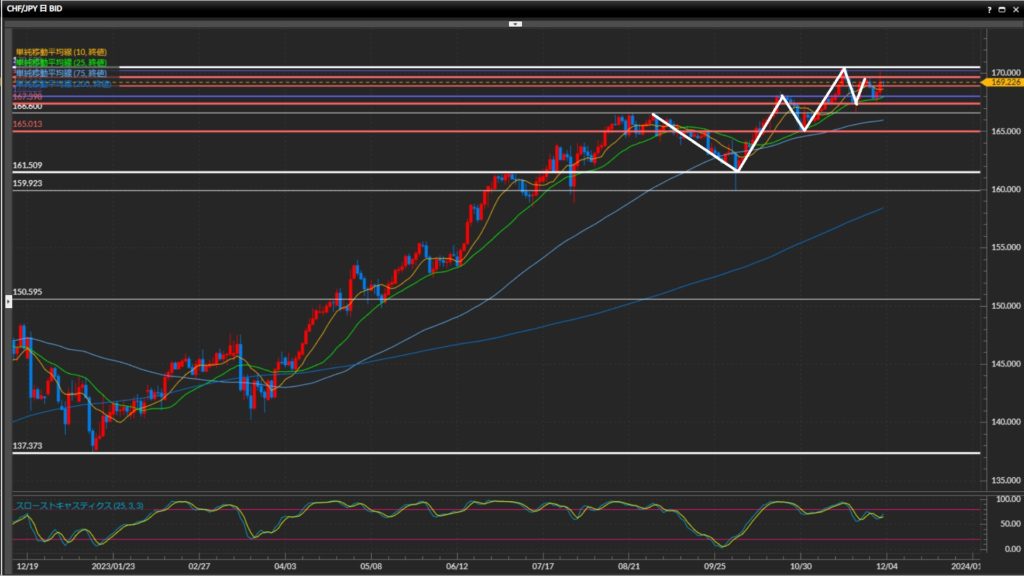とはいえ他のクロス円ペアと比較して上昇の流れは比較的はっきりしている印象。