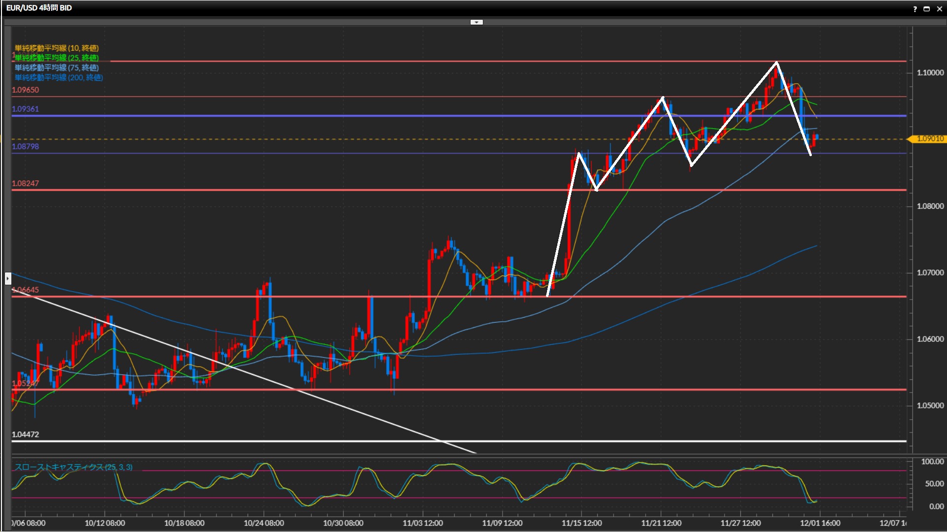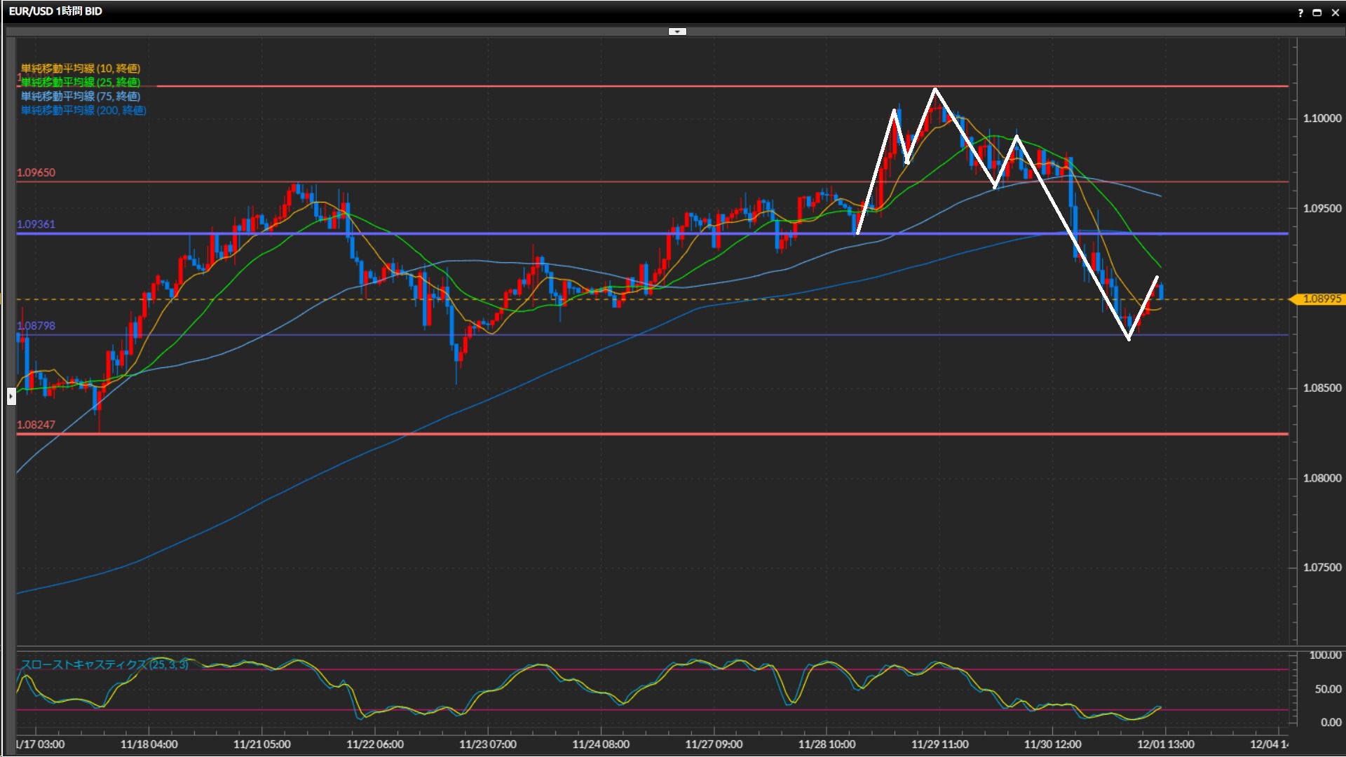 昨日170.23円まで急上昇したが、4時間足ではピンバーになってるため反転下落に注意。 - ユーロドルは日足〜4時間足は上目線、1時間足は下目線。
