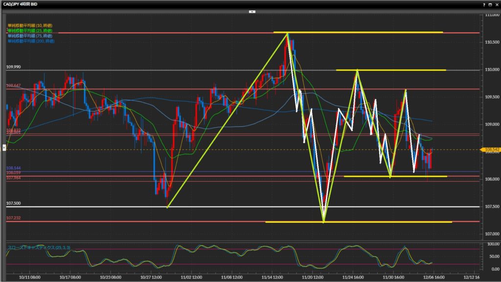 • 加ドル円日足〜4時間足でレンジ、1時間足は下目線終了。