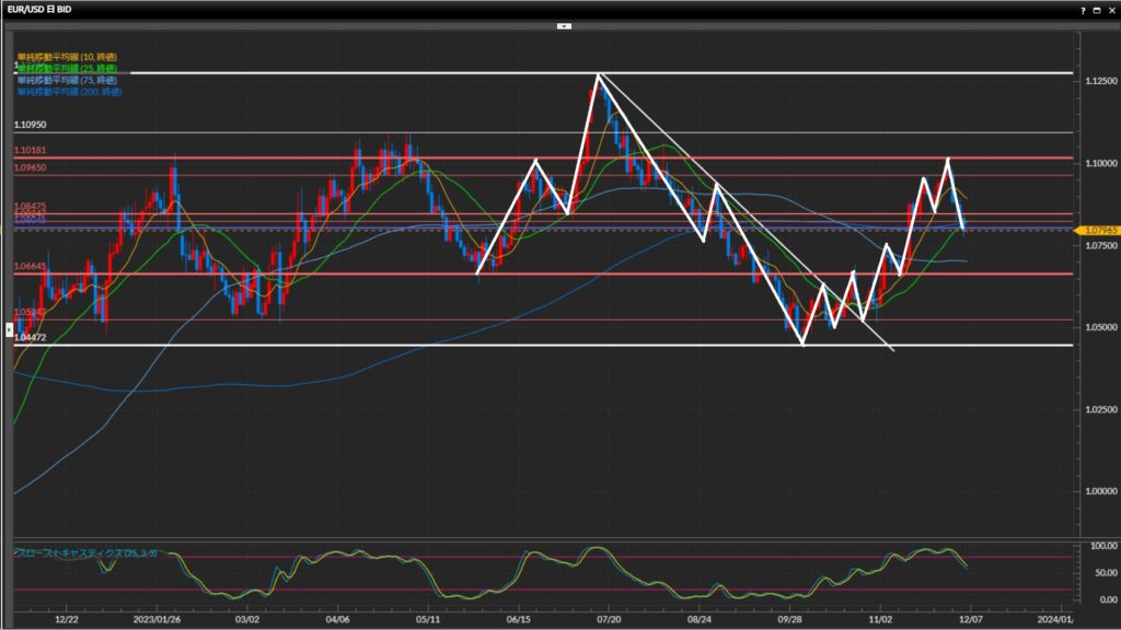 • ユーロドルは日足は上目線終了、4時間足〜1時間足は下目線