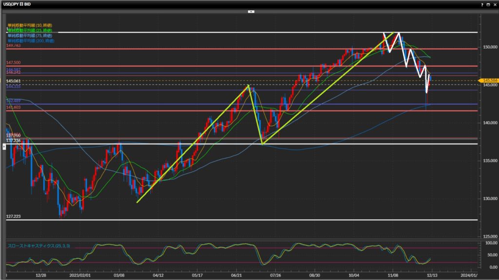 先週は141.60円まで下値更新。