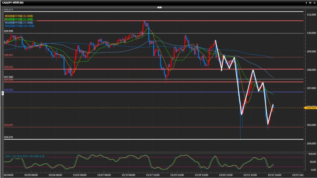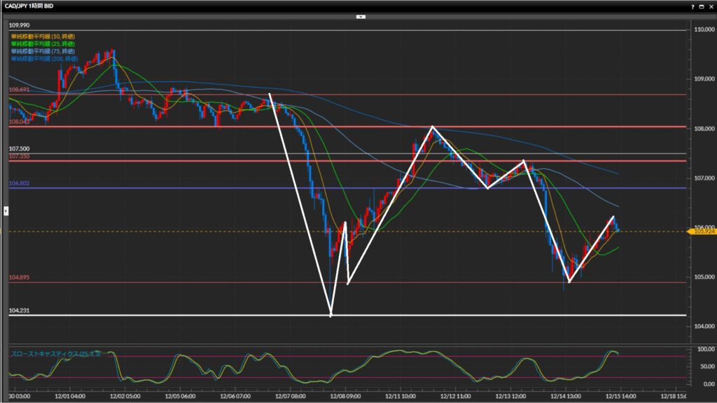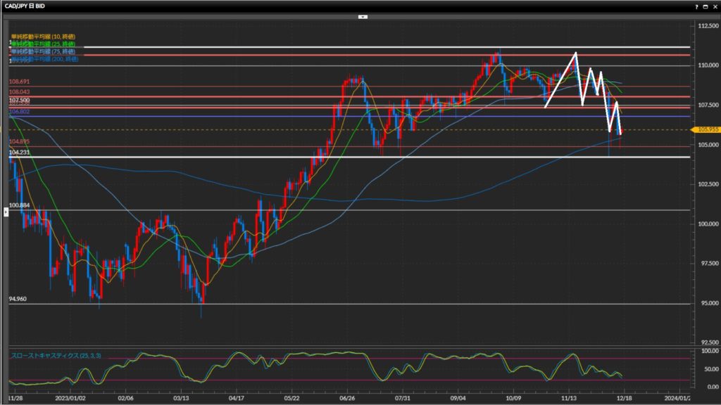 - 加ドル円は日足〜1時間足で下目線。