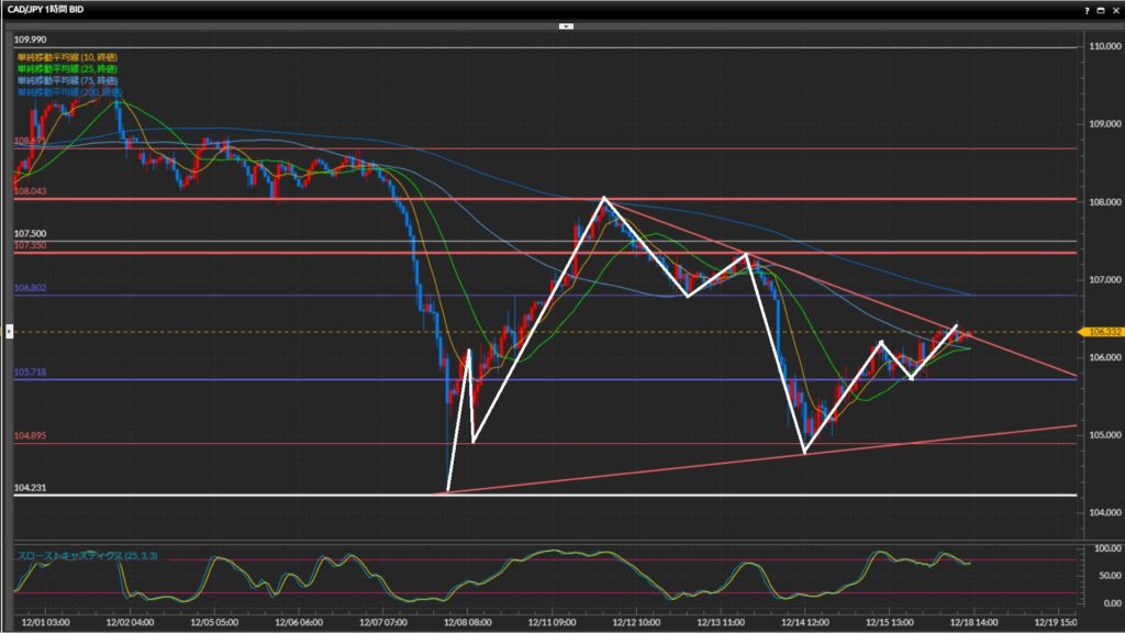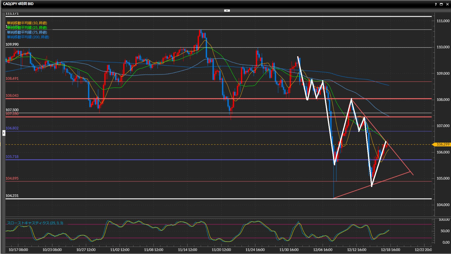 • 加ドル円日足は下目線4時間足〜1時間足はレンジ