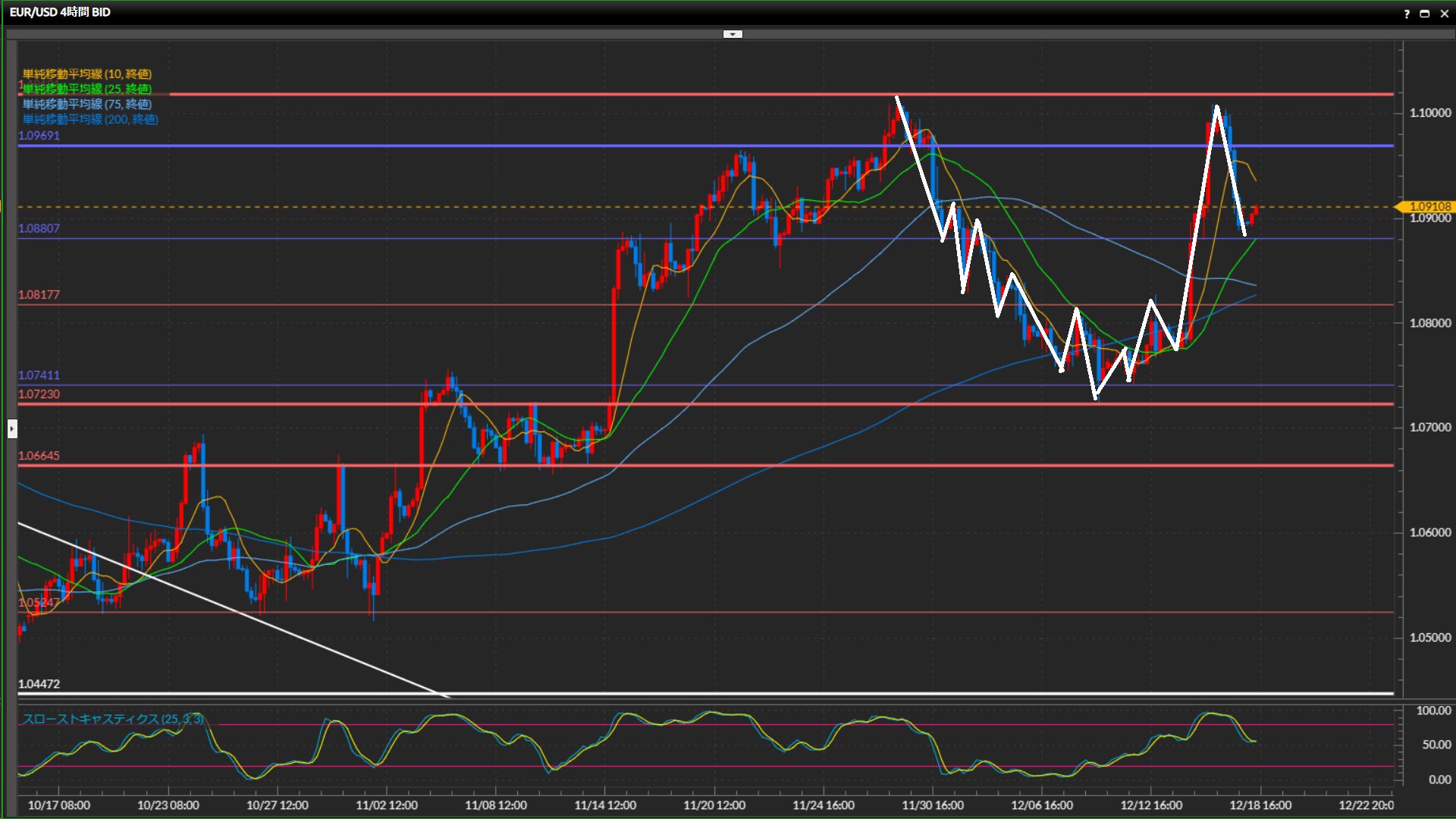 • ユーロドルは日足は上目線終了、4時間足は上目線1時間足は下目線