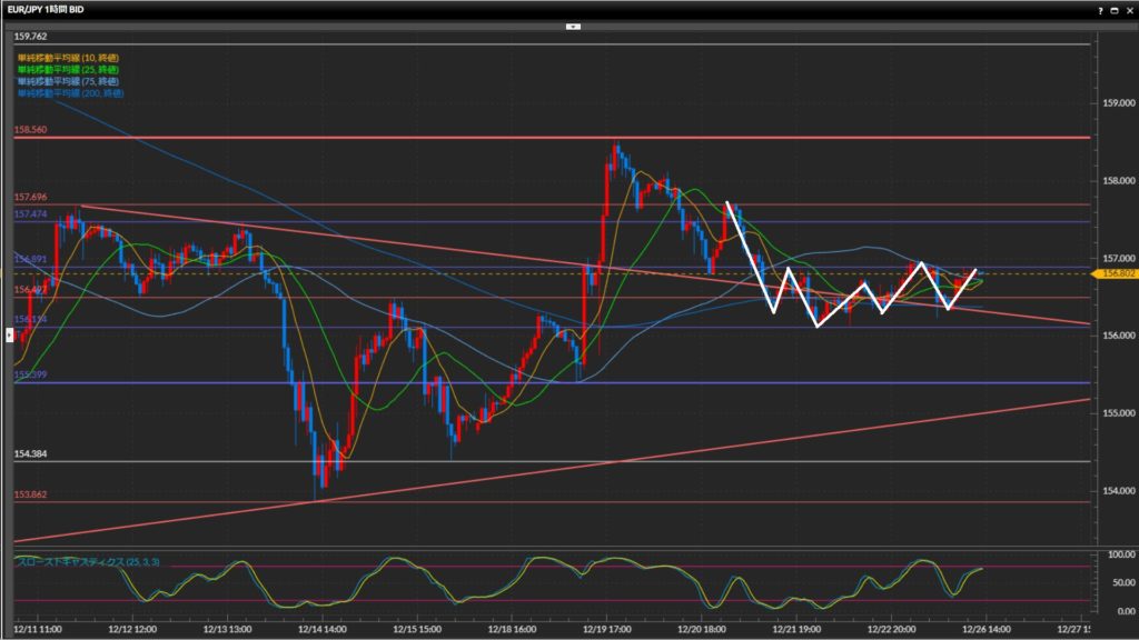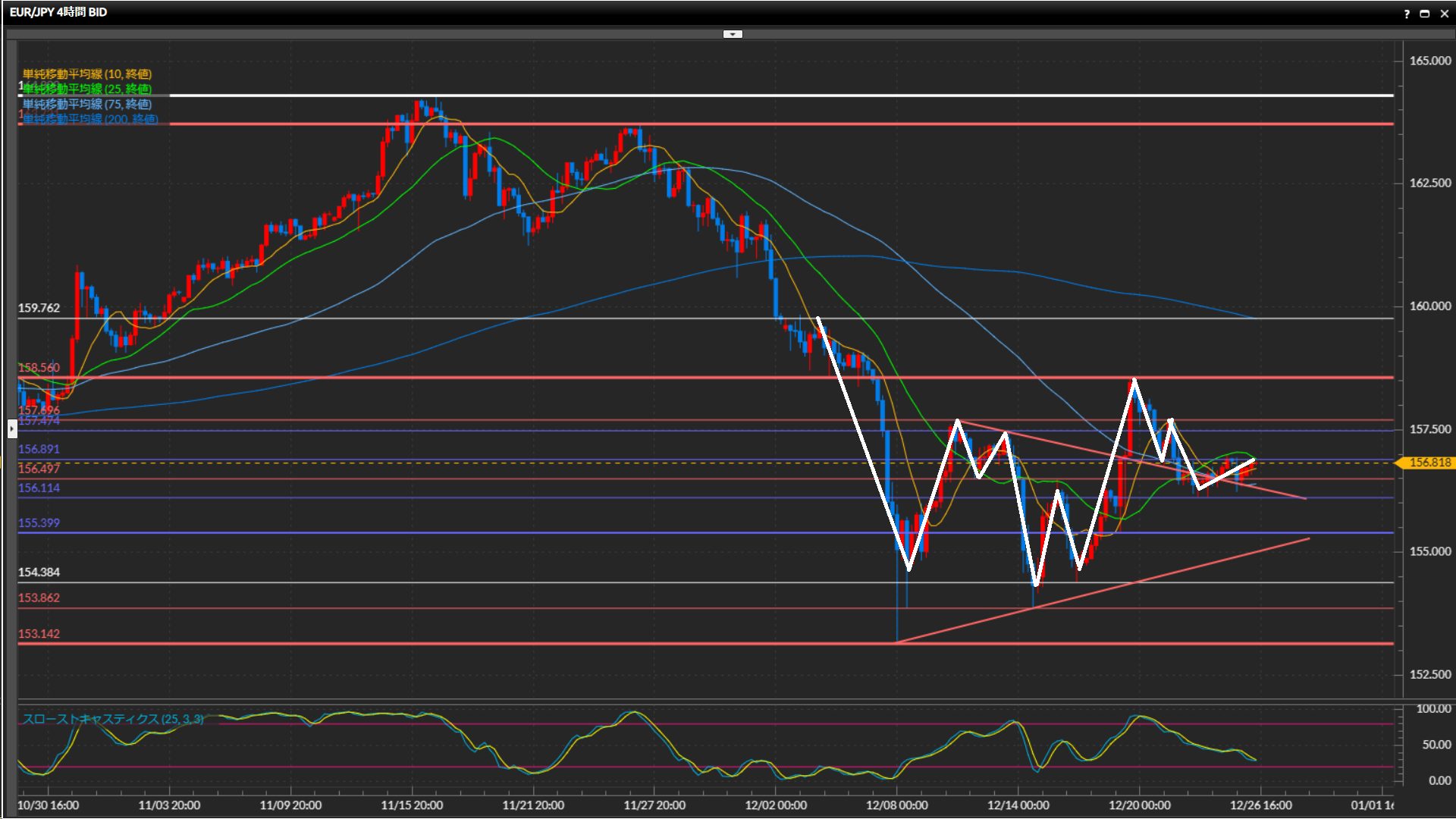 方向感が定まるまでは基本的には様子見。 - ユーロ円は日足は下目線終了、4時間足は下目線、1時間足は上目線。