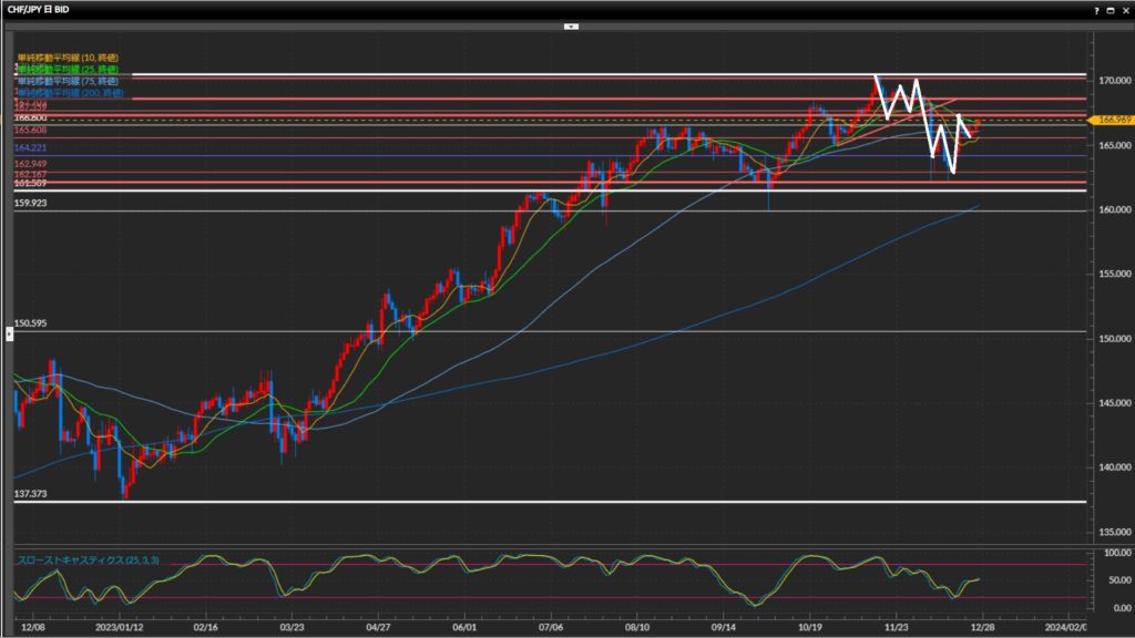 直近高値166.60円を上抜け確定したため、下目線終了。