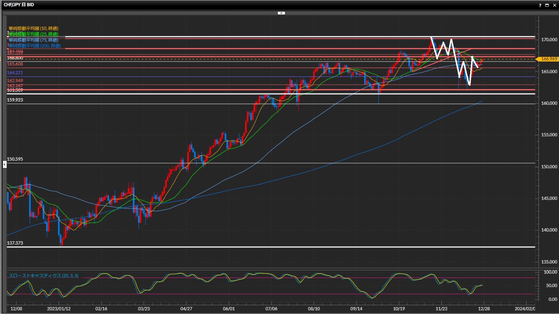 昨日のローソクで25SMA上抜け確定。続いて75SMAを抜けられるか注目。