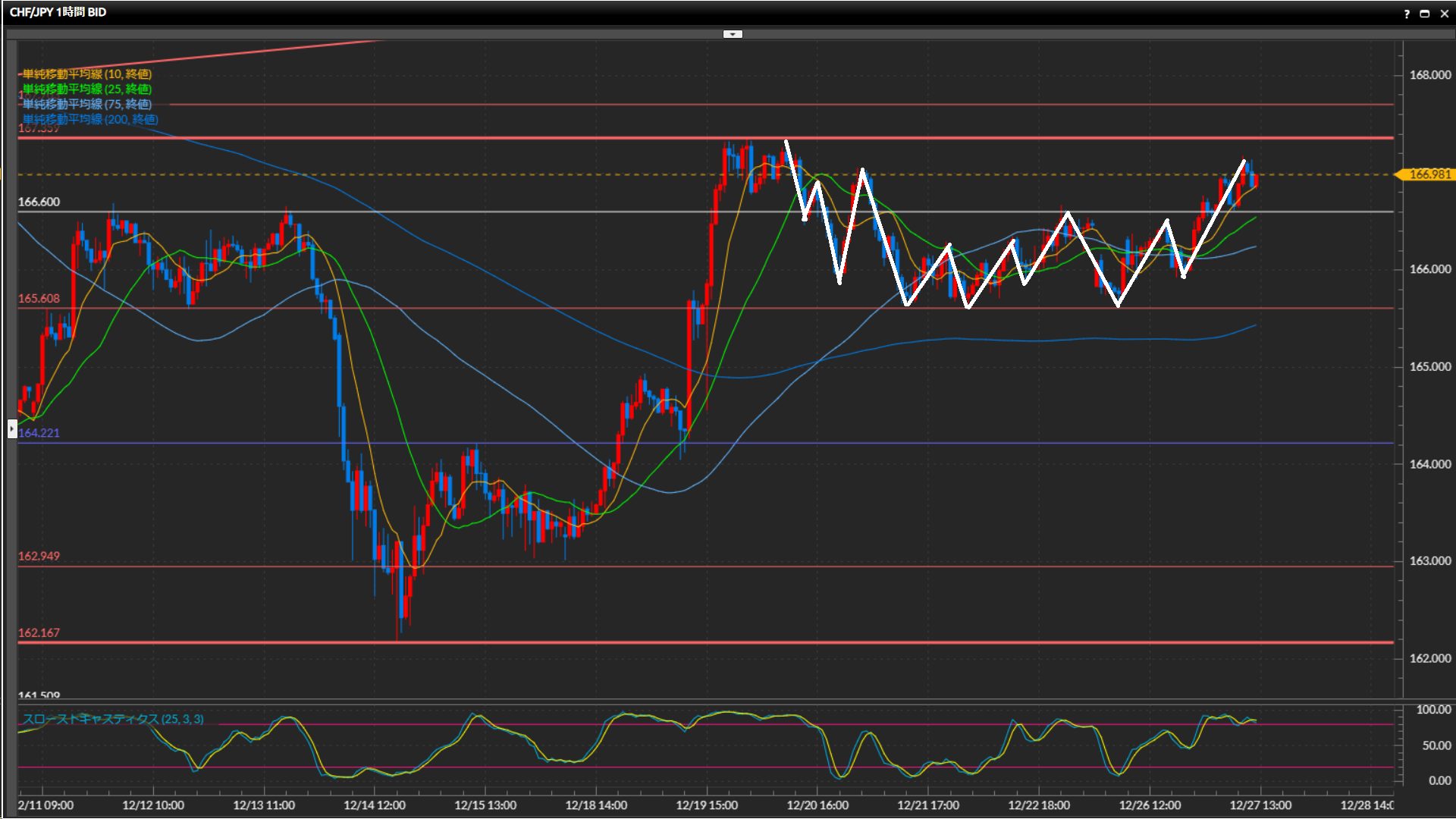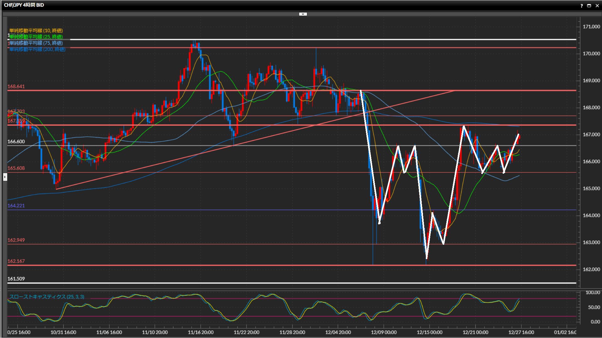 4時間足水平線167.36円突破を確認してから買いで仕掛けたい。
