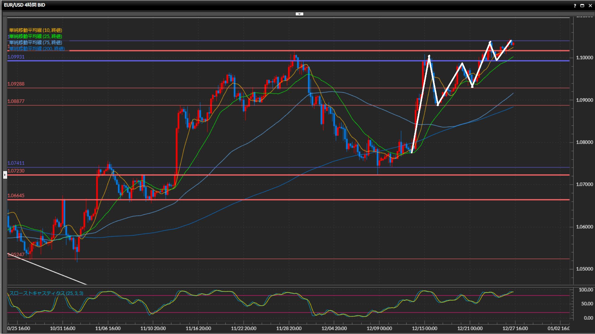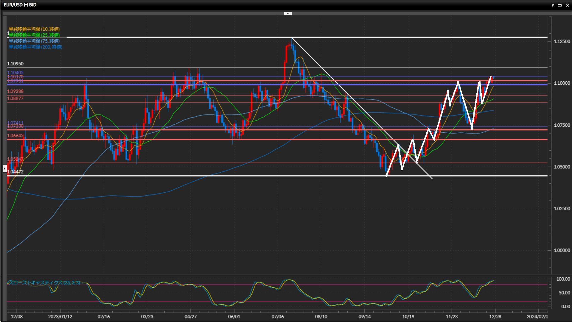 上値の目標は日足水平線1.1095ドル付近。
