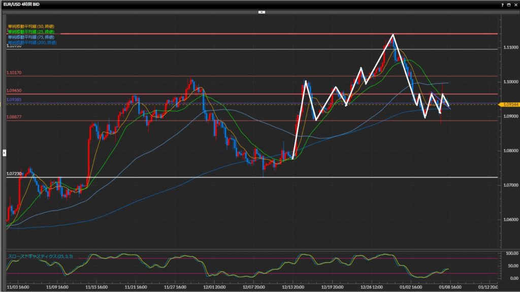 直近安値は1.0888ドルで、ここを抜けたら上目線終了。