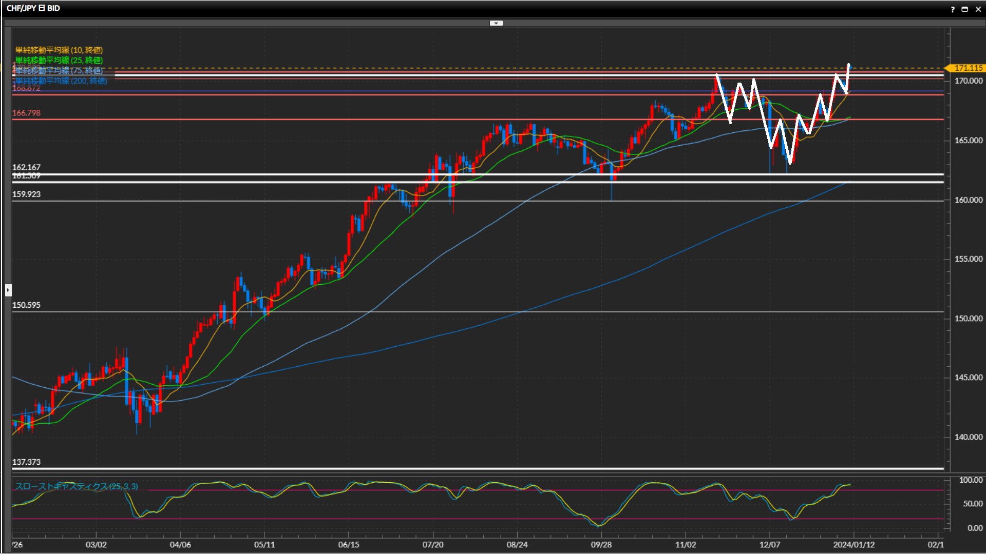 最高値170.58円を昨日上抜け。