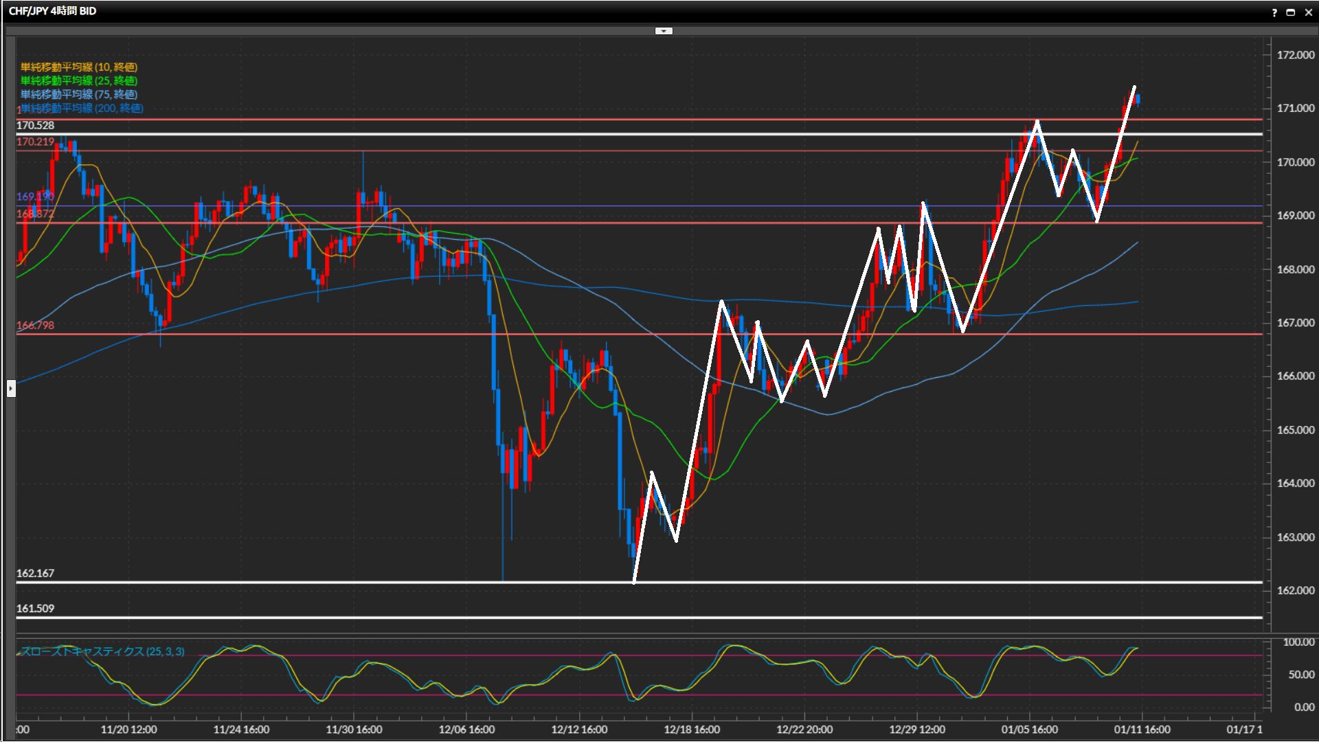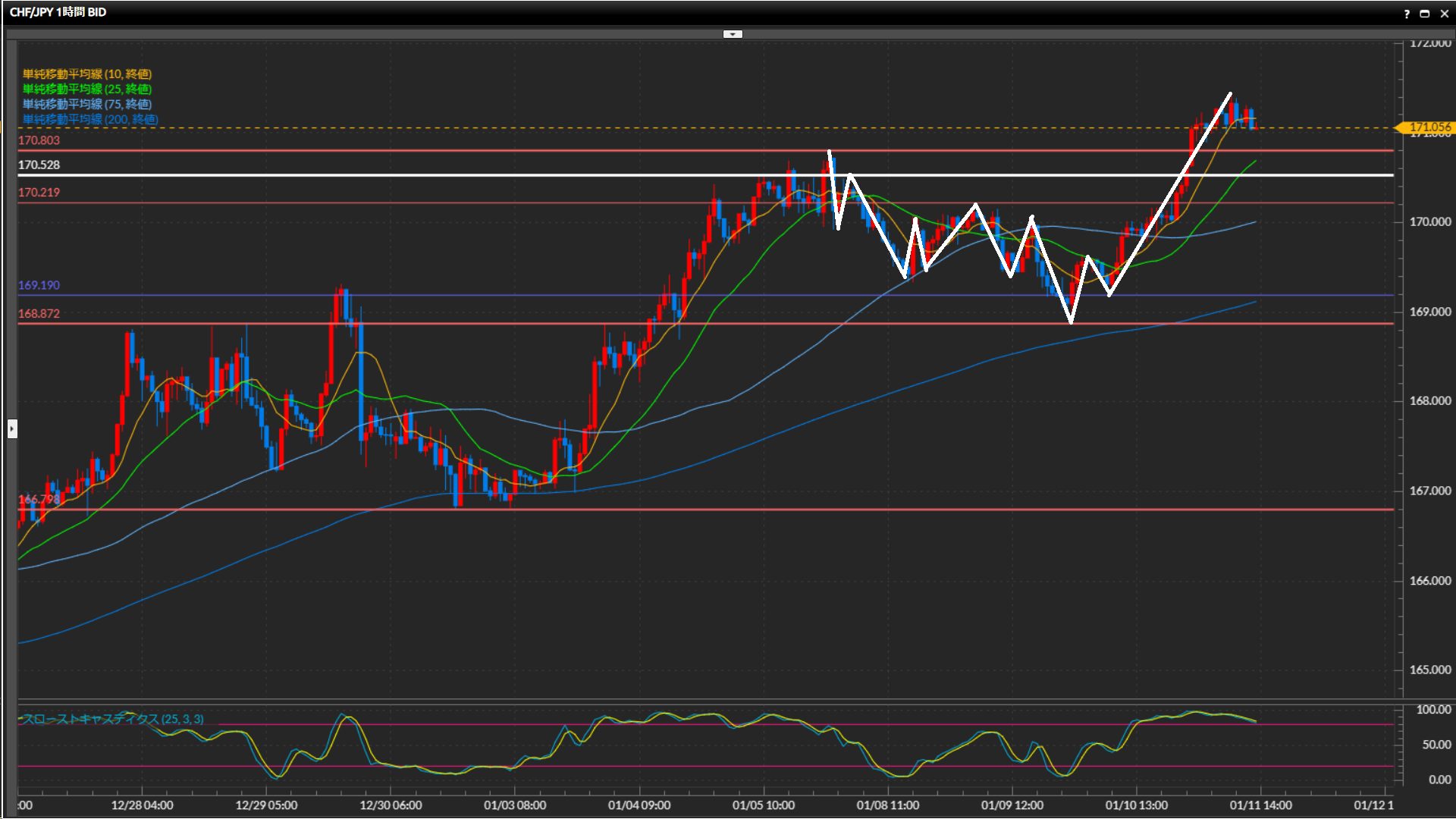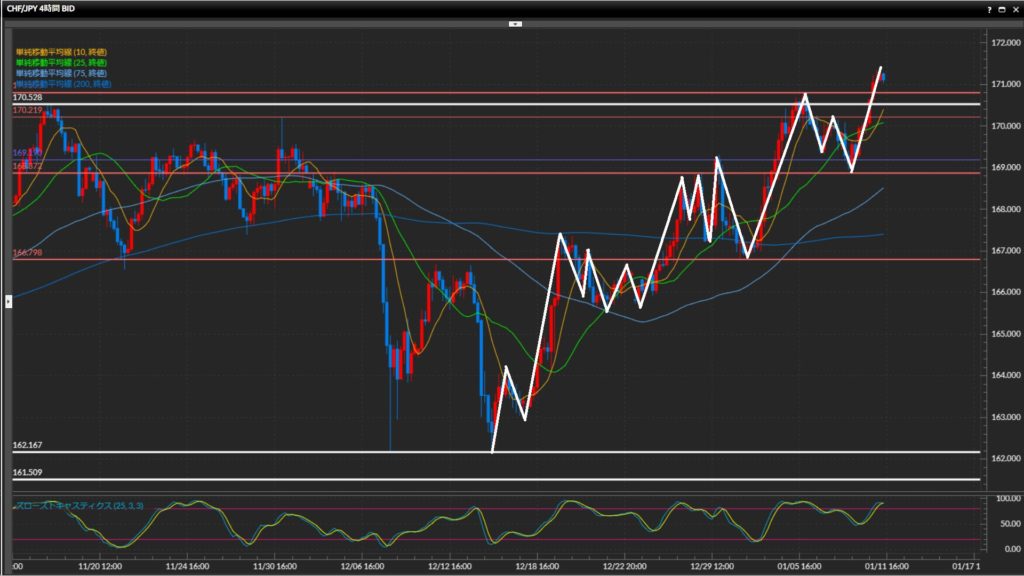 押し目候補は4時間足水平線170.80円や、日足水平線170.53円。