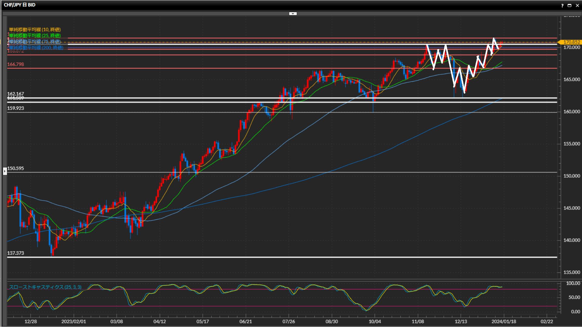 基本はロングだが、最高値171.50円前では手仕舞いが無難。