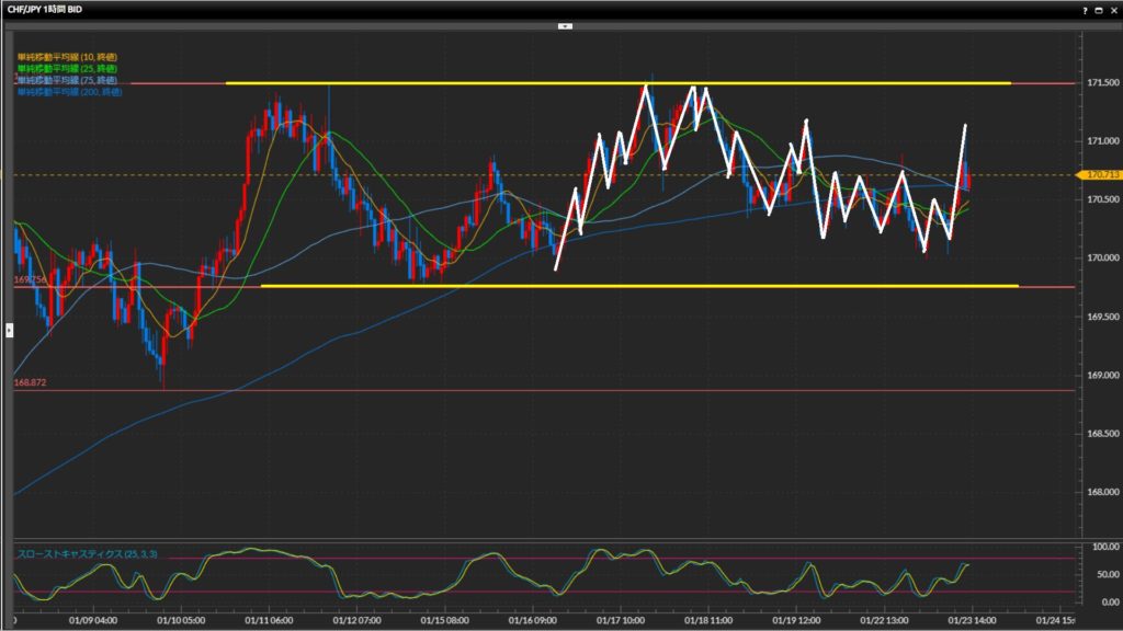 169.76円-171.50円のどちらかに抜けるまでは、トレード様子見。