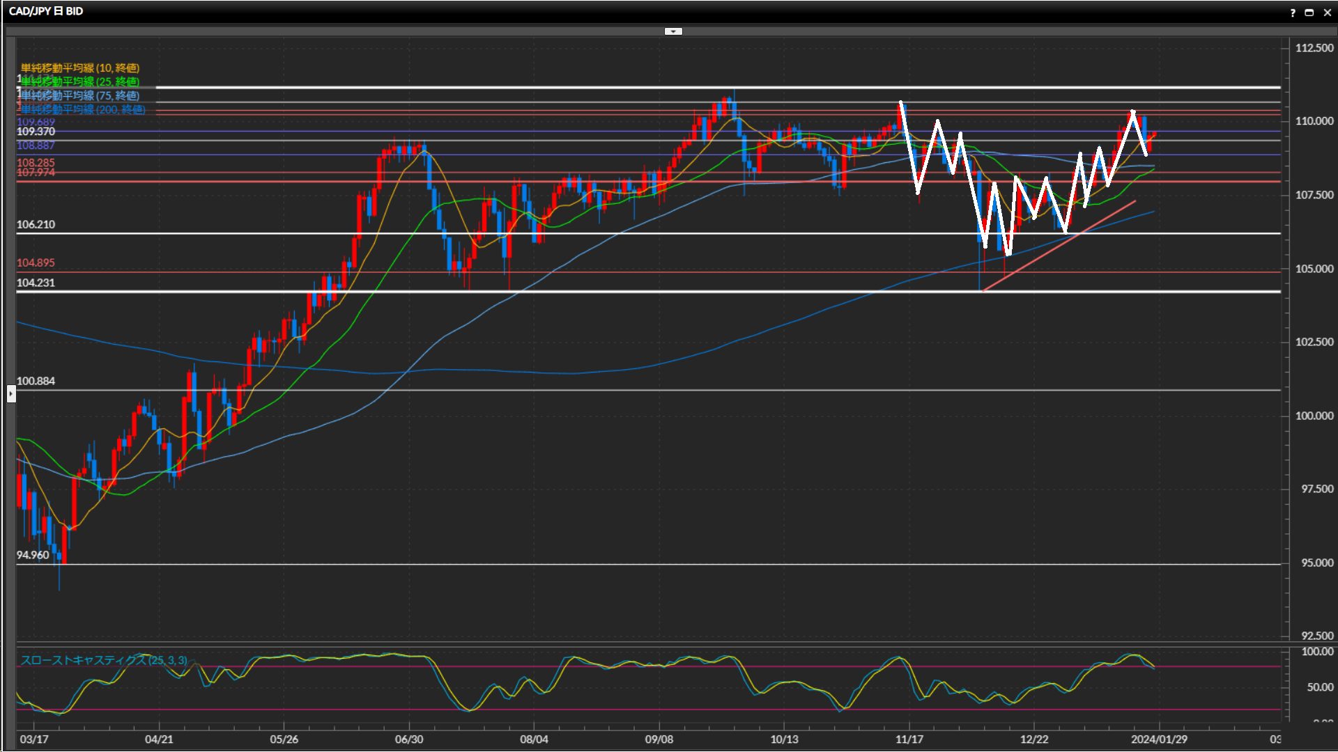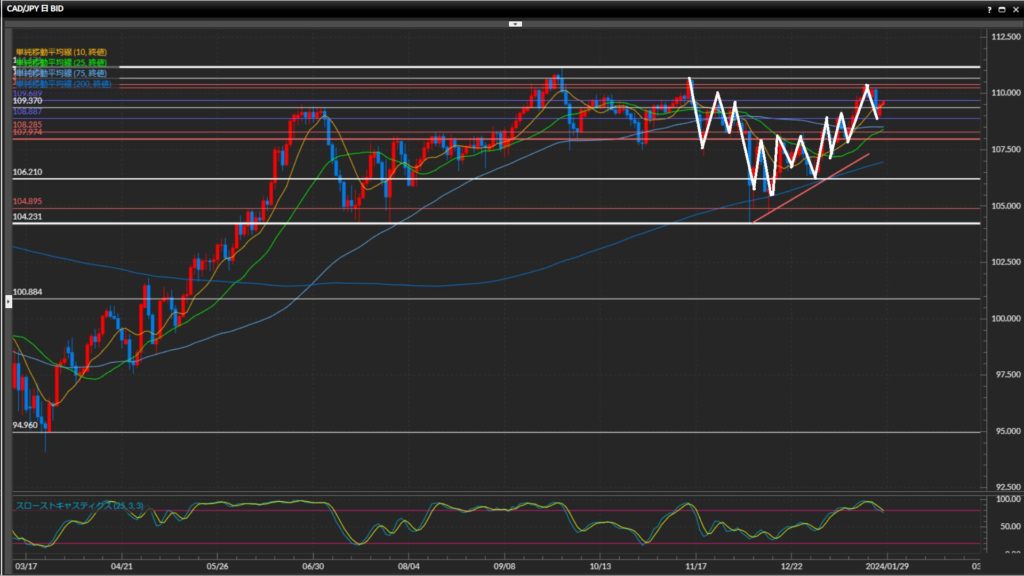 • 加ドル円日足は上目線4時間足は下目線1時間足は上目線