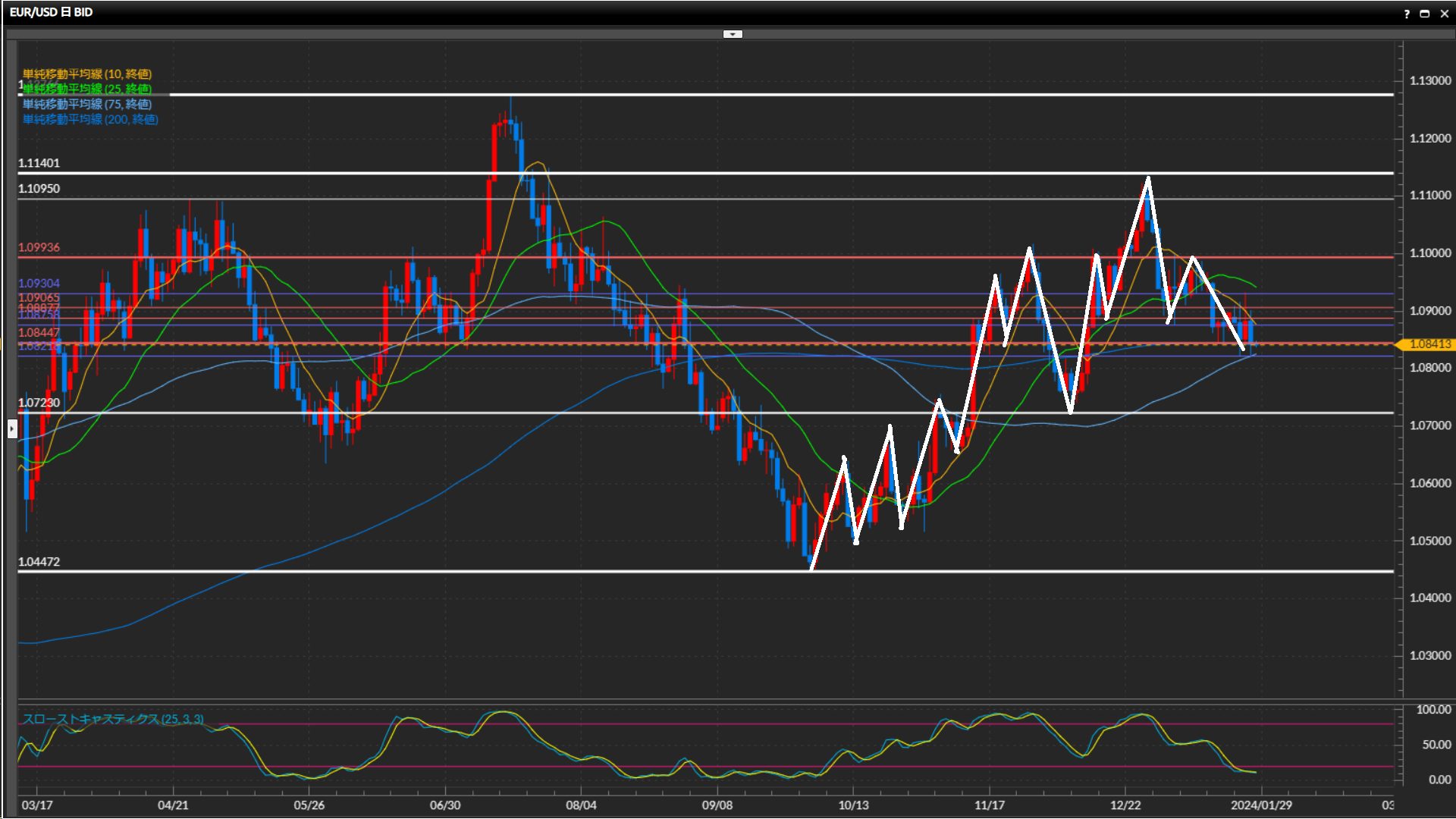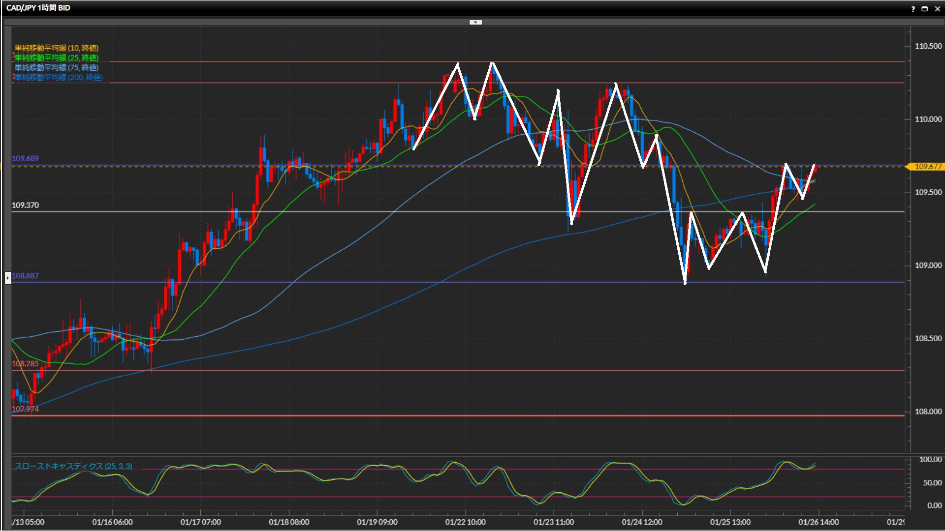 10SMA、25SMAが下向きで、75SMAを下抜けられるか注目