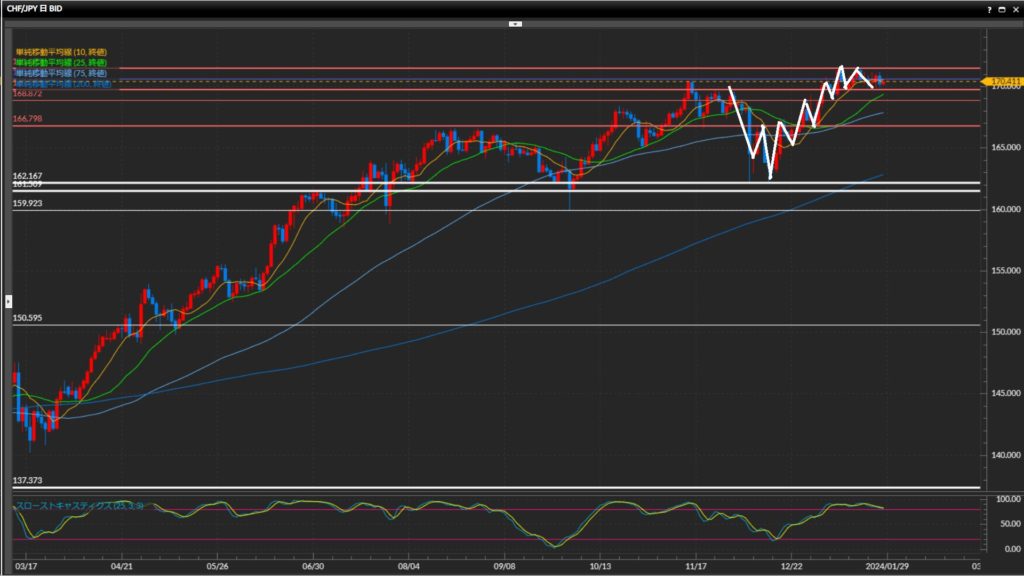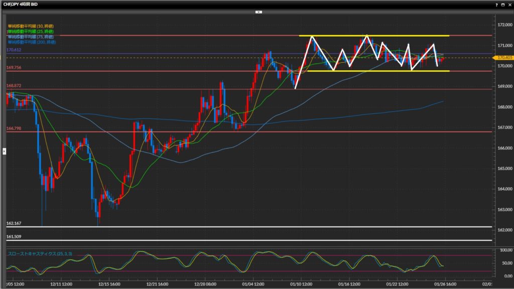 • フラン円日足は上目線4時間足〜1時間足はレンジ