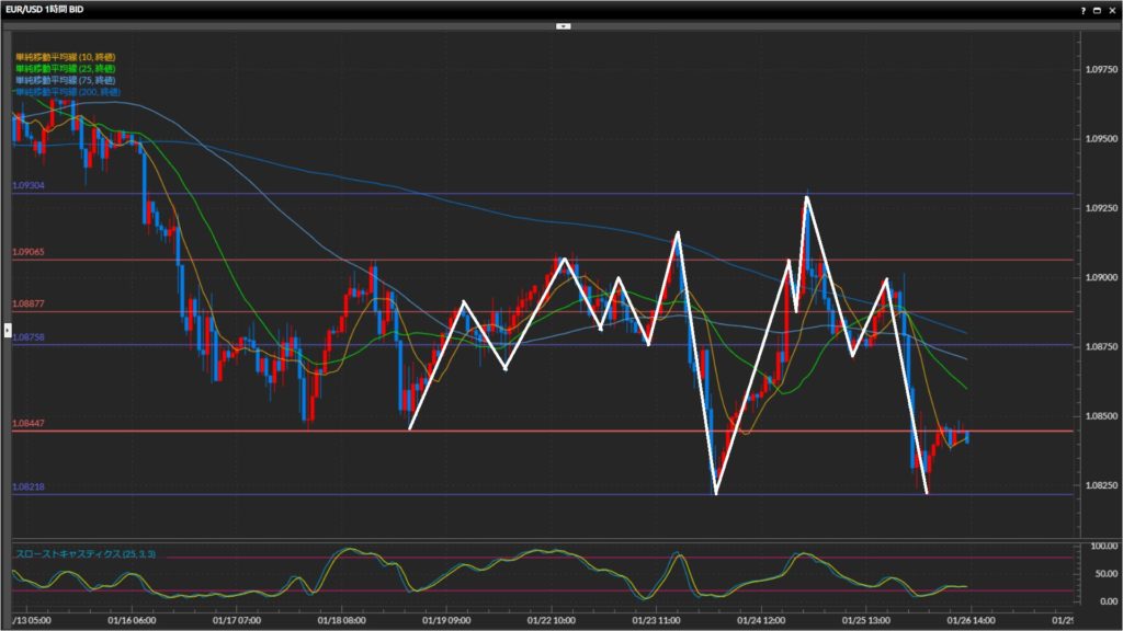 • ユーロドル日足〜1時間足で下目線