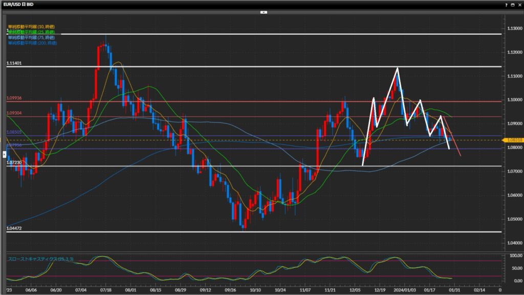 10SMA、25SMAが下向きで、75SMAを下抜けられるか注目。