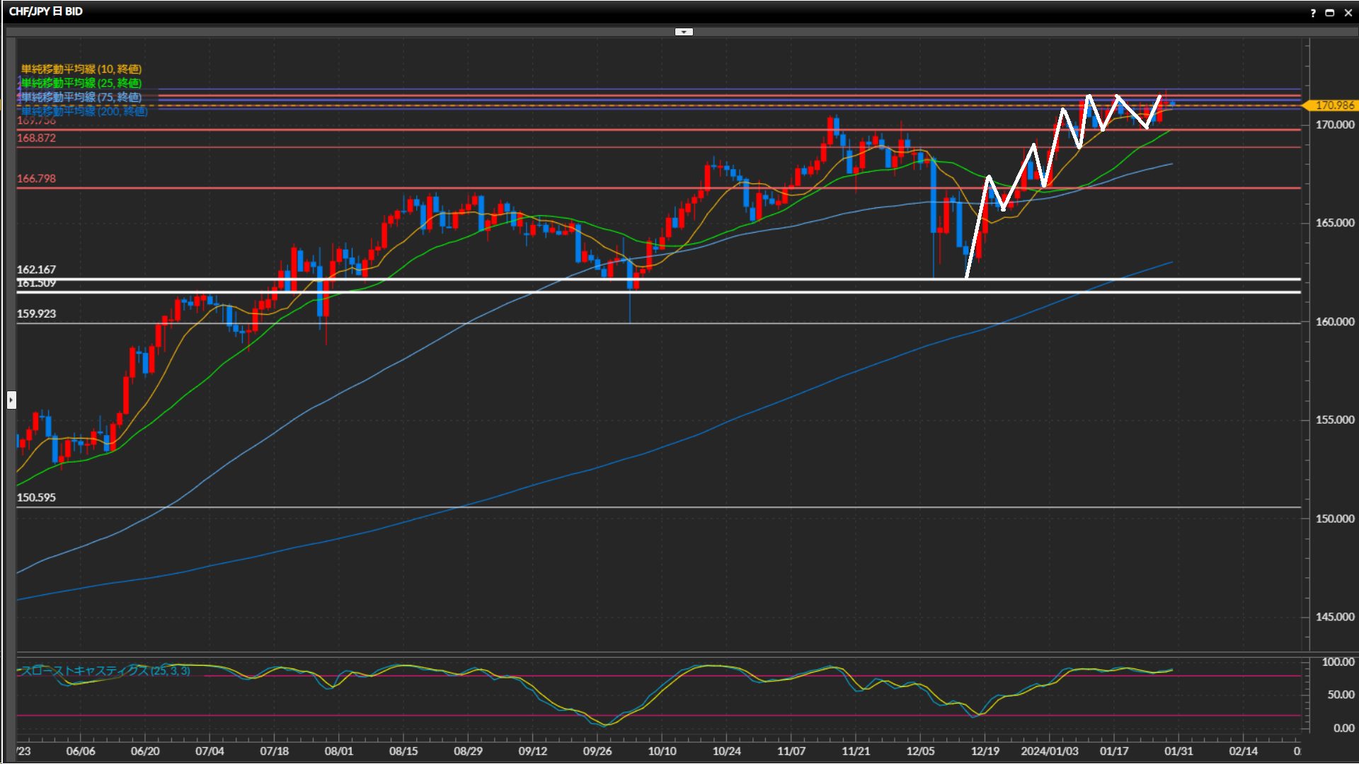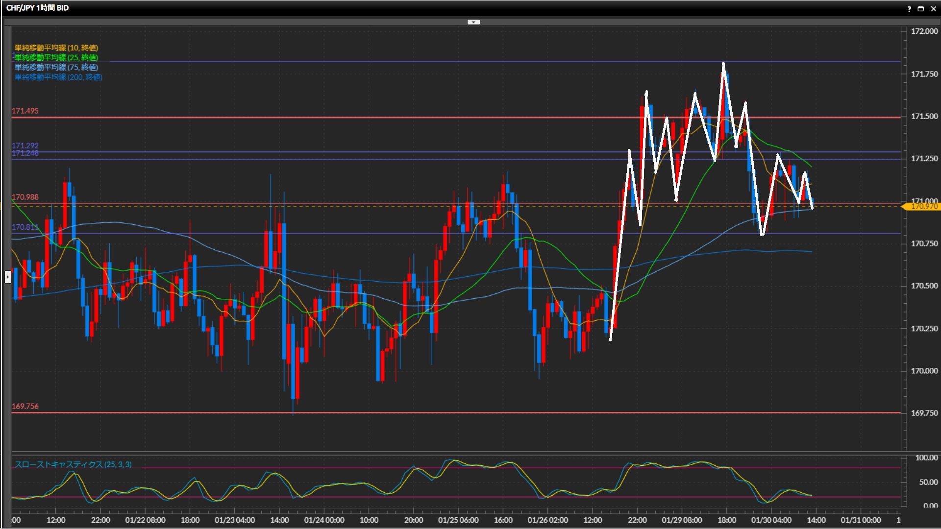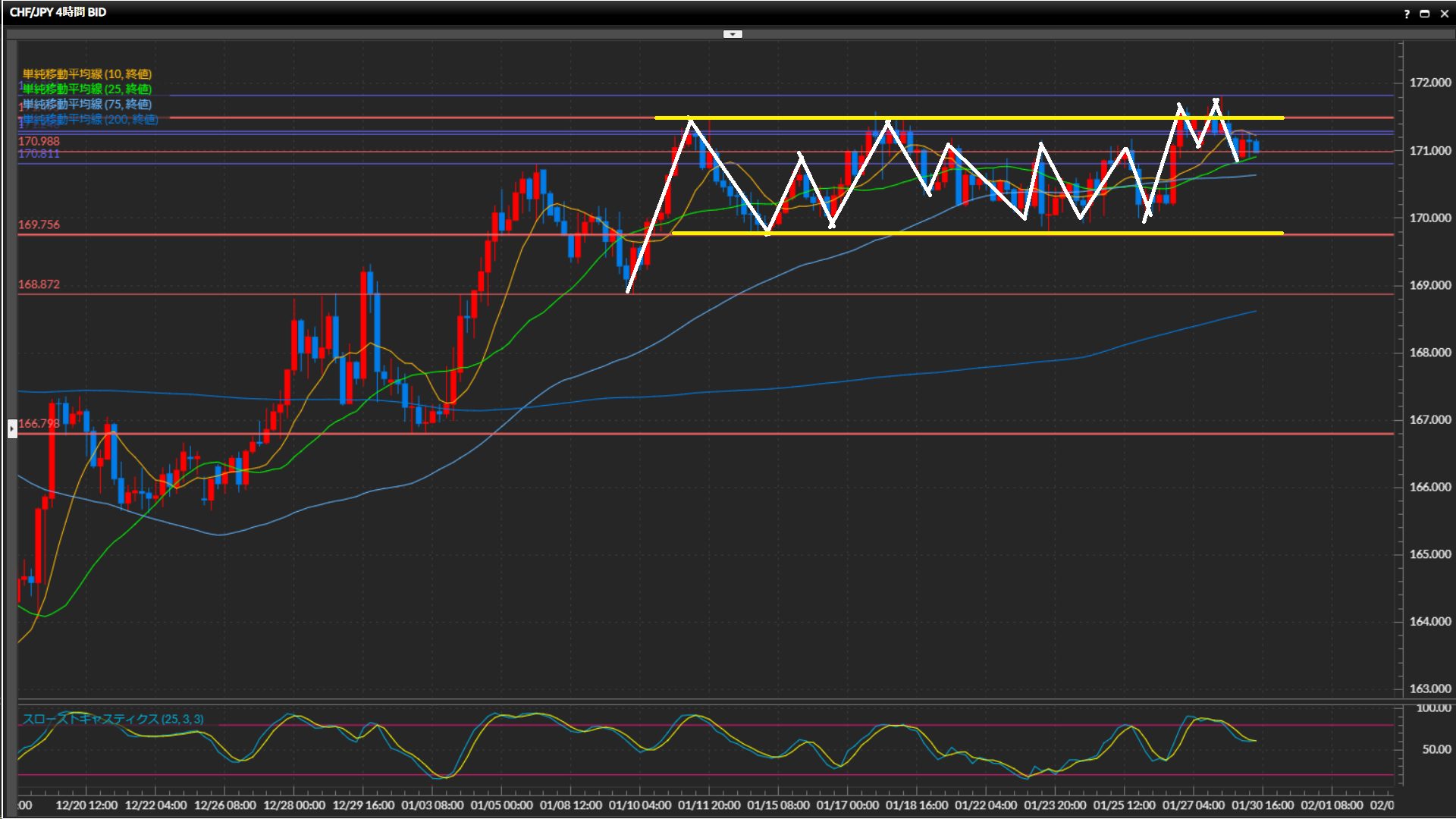 4時間足の169.76円-171.50円をレンジを意識しつつ、1時間足基準ではショート狙い。