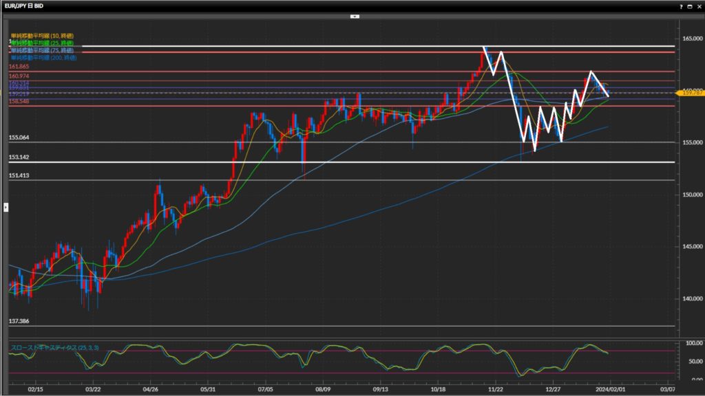 • ユーロ円日足は上目線4時間足は下目線1時間足は上目線