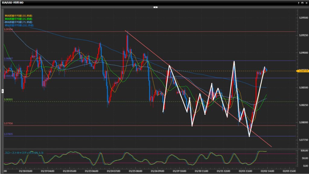 波の上下が激しく目線固定が難しいため、トレードは様子見。
