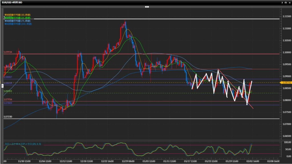 基本はロング狙いなものの、綺麗な波の形で動いていないため注意。
