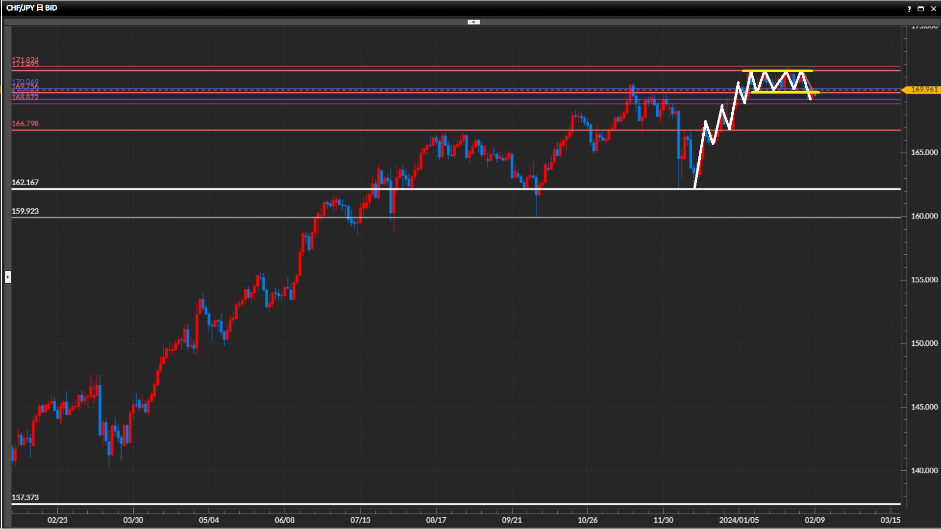 小さな波の高値170.26円を上抜け確定したらレンジ継続。