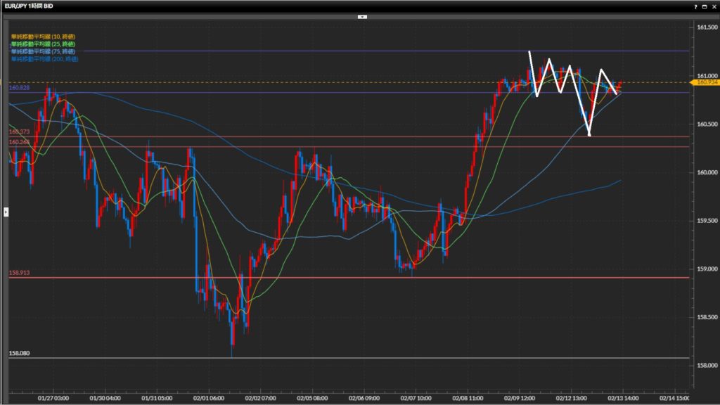 現時点の直近安値は160.37円。水平線160.83円が意識されている。