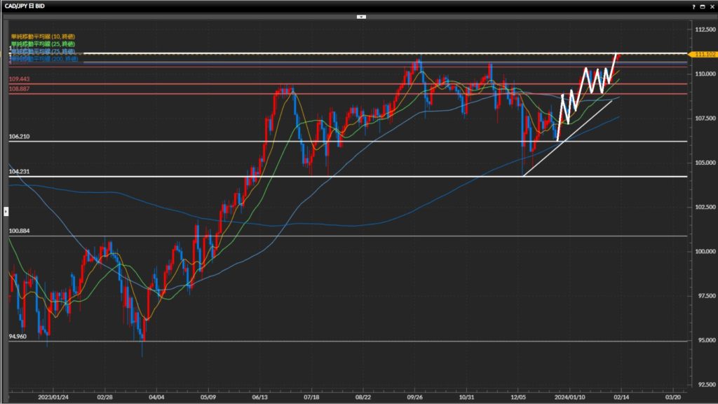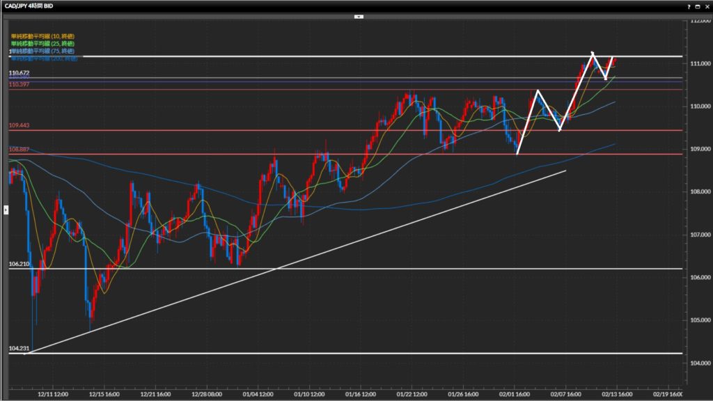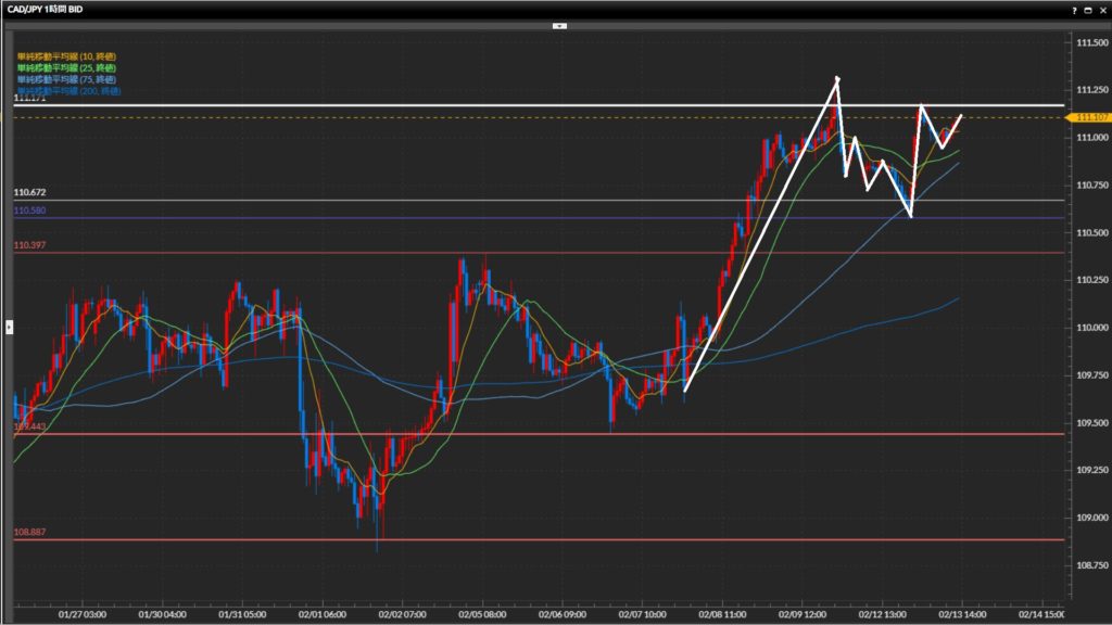 • 加ドル円日足〜1時間足で上目線