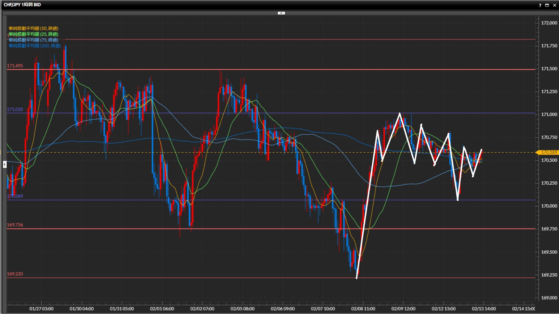基本は様子見。170.67円を上抜けたら1時間足で上目線固定。