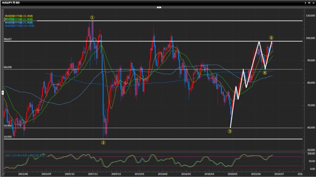 ④94.07円(’23/3月)で押し目形成。ここを切下げない限りは上目線。